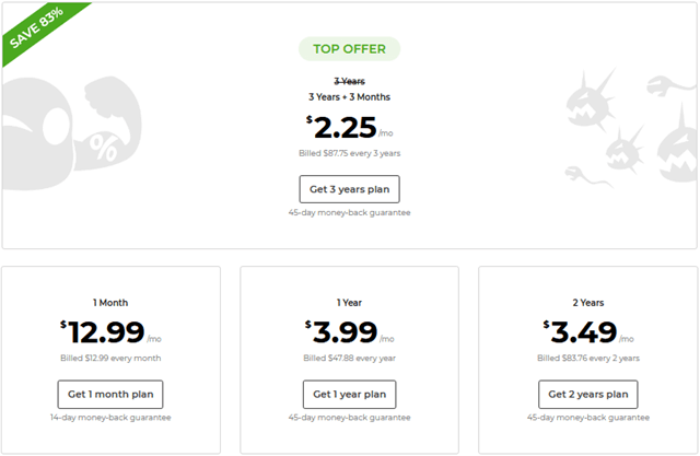 客户每月只需 10 美元,即可享受无限带宽并访问所有 19 个国家/地区(如上所列)的服务器。有 50 到 500 GB 的高级计划。在 Open加速器 或 PPTP 以及服务器端口速度 100 Mbit 和 1 Gigabit 之间进行选择,Sh3lls 加速器 服务支持 Windows、Mac 和 Linux。以及 iOS(iPhone、iPad)和 Android 设备。每年注册可享受高达 46% 的定期折扣。